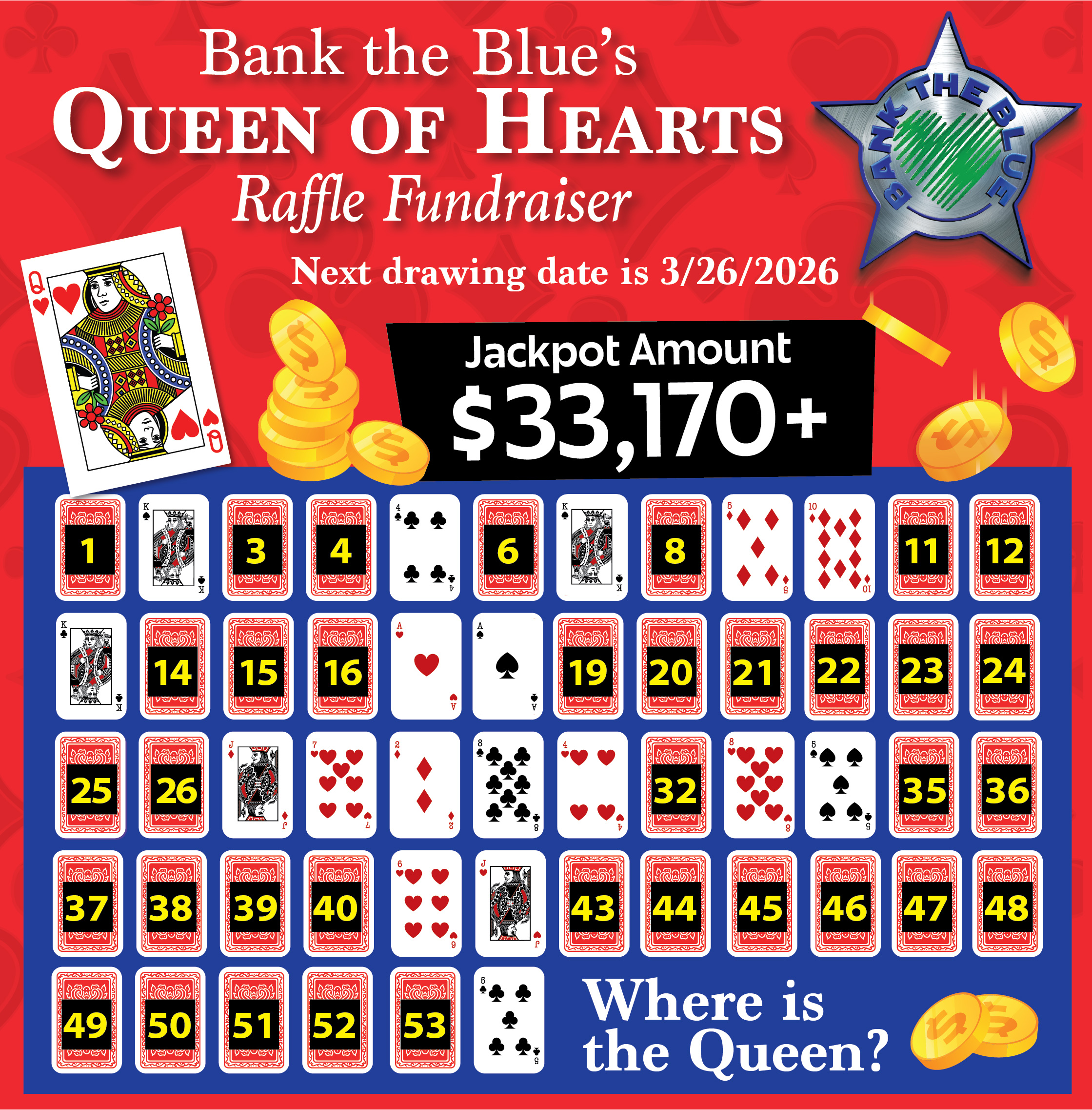 BANK THE BLUE’S QUEEN OF HEARTS RAFFLE FUNDRAISER